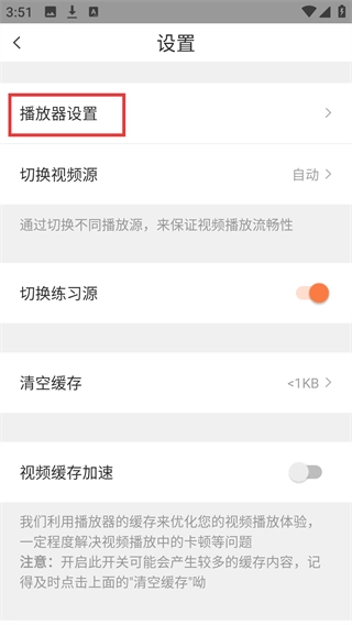 进入【设置】页面后,找到并点击【播放器设置】选项,即可进入对应的设置界面。