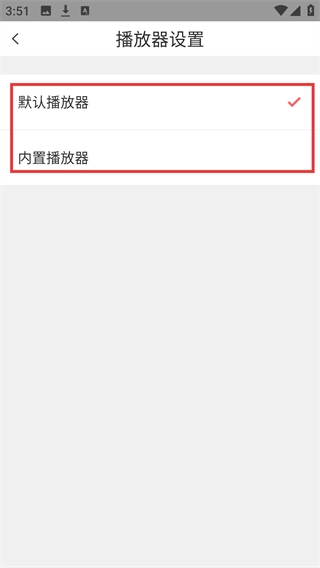 进入【播放器设置】页面后,你可以选择【默认播放器】或者【播放器】这两个选项,以此来完成视频播放工具的选择与设置。