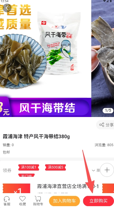 在商品详情页确认好相关信息后,点击“立即购买”按钮就能完成下单操作。