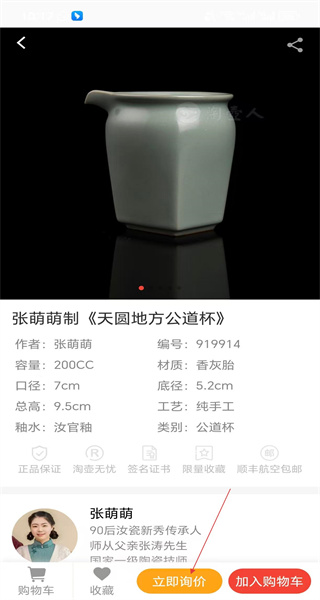 在商品详情页面,浏览商品参数与作者相关信息,找到“立即询价”按钮后点击,即可进入咨询界面。