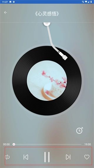在《心灵感悟》的播放页面,你可以借助底部控制栏上的暂停、切歌等功能按钮,对音乐播放进行管理,从而帮助舒缓情绪。