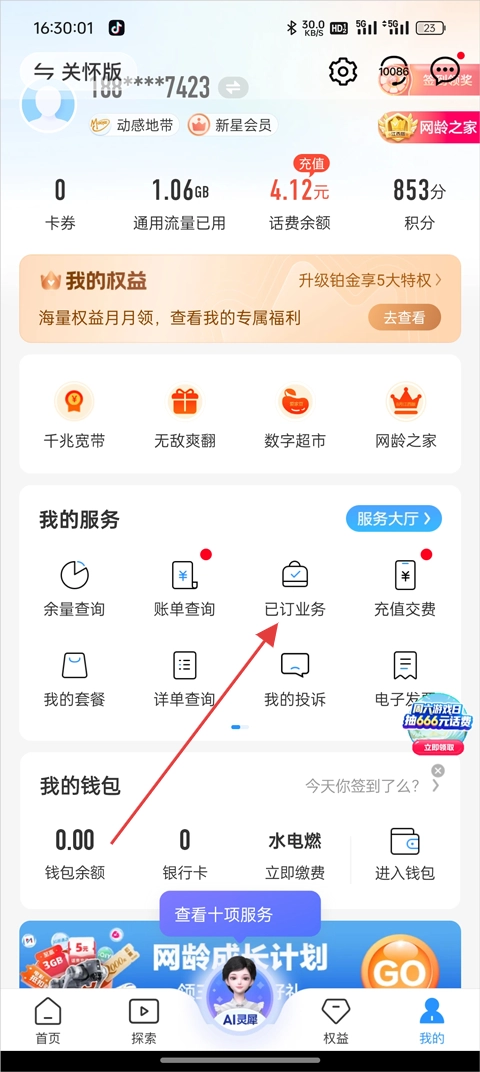 业务套餐,账单积分,一站式办理!