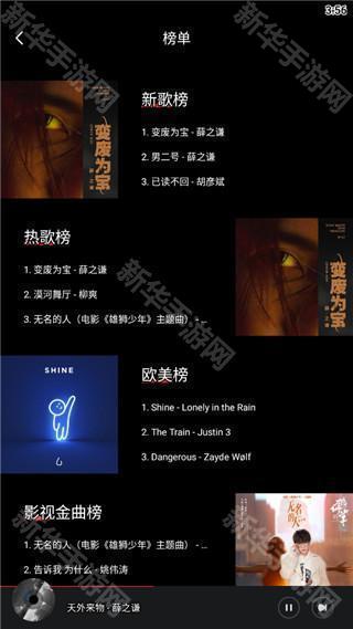6、当然,要是你不清楚该听什么歌,不妨点击首页的榜单,那里会为用户呈现新歌榜、热歌榜、欧美榜之类的各类排行榜单。