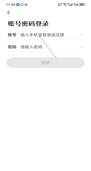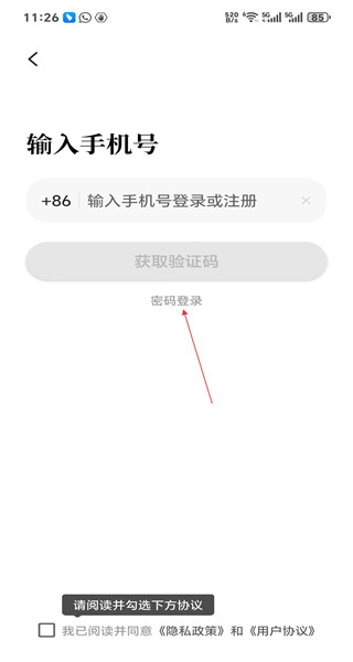 进入手机号输入页面后,找到手机号输入框,接着选择密码登录的选项,这样就能切换至账号密码登录的界面了。