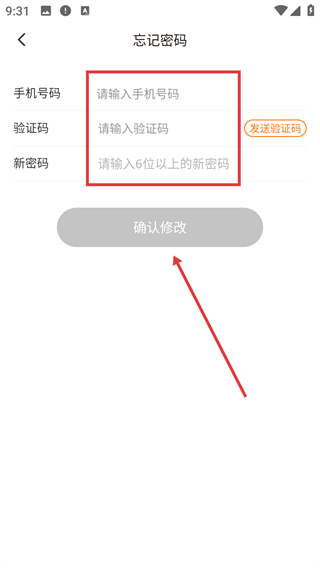 在密码找回页面,需按顺序填写【手机号码】、获取并输入【验证码】、设置6位及以上的新密码,之后点击【确认修改】按钮,即可完成密码重置操作。