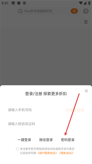 在登录或注册的弹窗里,选择【密码登录】这一选项,就能切换到密码登录的操作界面,之后可以用账号和密码来完成登录流程。