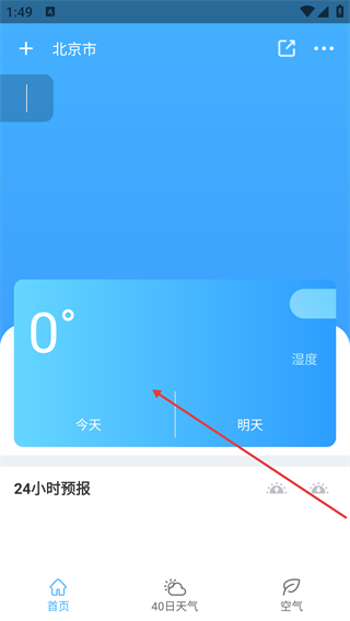 在主界面能够查看当前城市(例如北京市)的实时天气状况,界面底部设有【首页】【40日天气】【空气】等功能入口,通过这些入口可以切换不同的天气信息模块。