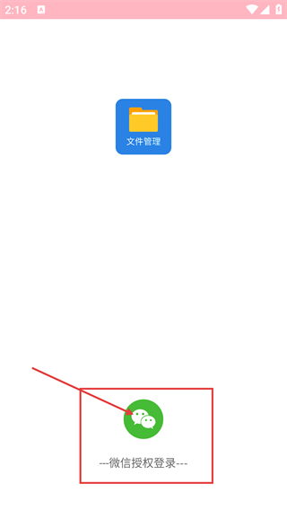 进入「文件管理」功能对应的界面后,找到「微信授权登录」按钮,点击此按钮完成授权操作,以便继续使用相关功能。