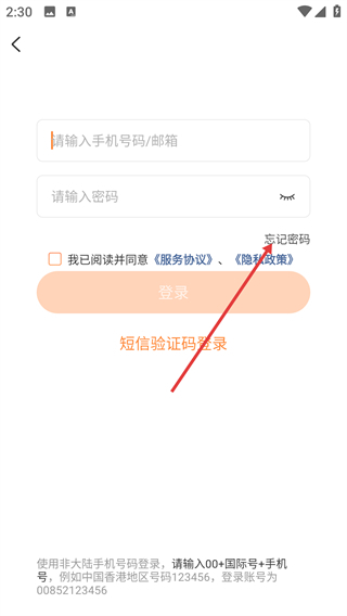 要是不记得密码了,点击【忘记密码】这个选项,就能进入密码找回的流程,之后可以选择用手机或者邮箱的方式来找回。