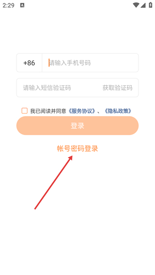 在登录界面点击【帐号密码登录】选项,切换到该登录模式,以便输入账号相关信息。