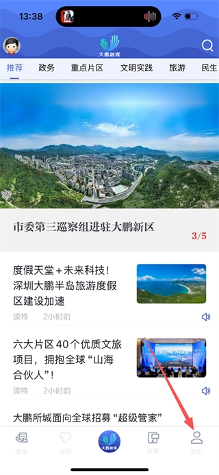 在深爱大鹏首页,点击底部的“我的”选项,即可进入个人中心页面。