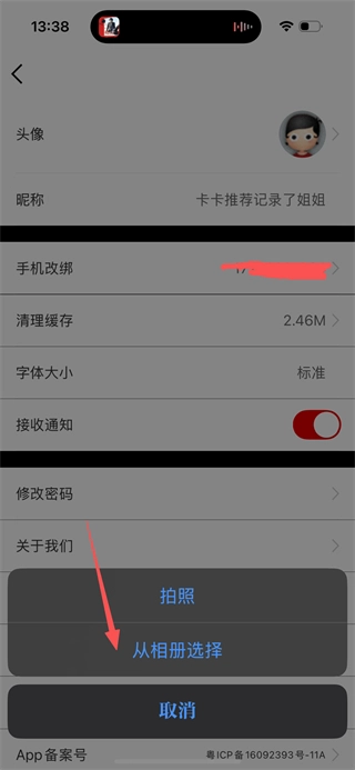 在窗口里,点选“从相册选择”这个选项,就能从相册中挑选图片来更换头像了。