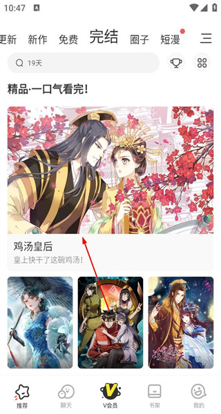 进入已完结漫画的页面,浏览页面上展示的作品列表,从中找到《鸡汤皇后》这部作品并点击,即可进入它的详情页面。