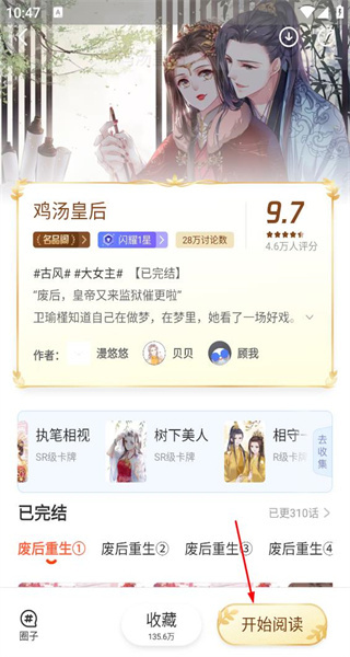 在作品详情页面,你可以查看该作品的评分与简介,接着点击“开始阅读”按钮,就能进入漫画的阅读界面了。