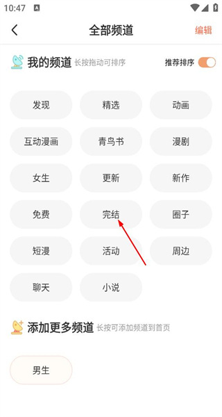 在所有频道页面里,找到“完结频道”这个选项,点击它就能进入到完结漫画的展示页面了。