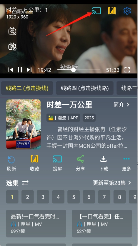 点开想看的影片进入到播放页面,点击右上角的投屏。