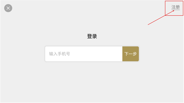 3、进入手机号登录界面后,在【输入手机号】框填号码点下一步登录,也能点击【注册】进入注册界面。