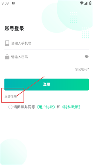 3、在账号登录页面,填写【请输入手机号】与【请输入密码】可完成登录;点击【立即注册】按钮可进入账号注册界面。