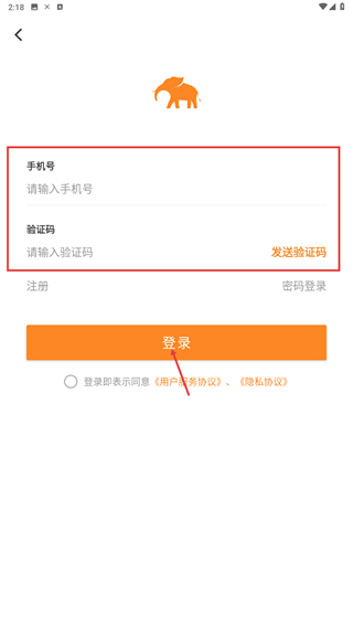 2、选用验证码登录的方式,先填写【手机号】并点击【发送验证码】按钮,输入收到的验证码后勾选相关协议,最后点击【登录】按钮完成验证流程。
