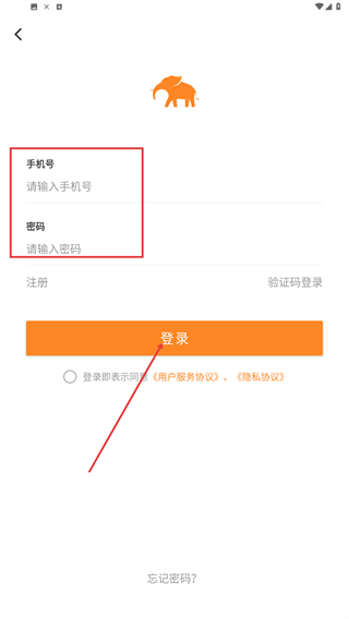 4、切换到密码登录模式,输入【手机号】和【密码】,勾选相关协议后点击【登录】按钮,就能完成账号登录流程。