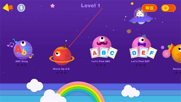 2、在【Level-1】页面,选择对应学习单元(如【Warm-Up-A-Z】),进入字母启蒙的预热学习环节。