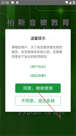 1、当弹出【温馨提示】弹窗时,请先阅读【用户协议】和【隐私政策】,之后点击【同意,继续使用】按钮,就能进入后续的操作界面。