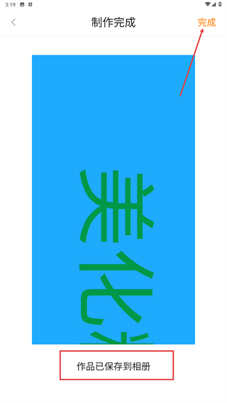 4、当作品保存成功后,页面会弹出“作品已保存到相册”的提示,此时点击右上角的【完成】按钮,即可结束整个制作流程。