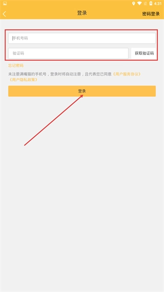 2、选择验证码登录时,填写【手机号码】后点击【获取验证码】,输入验证码后点击【登录】(未注册手机号会自动完成注册)。