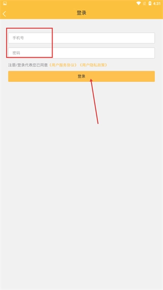 3、选择密码登录时,依次填写【手机号】与【密码】,确认协议后点击【登录】按钮完成操作。