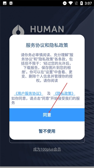 进入应用后,首先要查看【用户服务协议】和【隐私政策】,知晓信息授权的相关规则,确认无误后点击【同意】按钮才能继续操作。