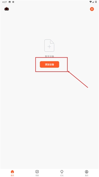 1、在首页(显示“暂无设备”)界面,点击【添加设备】按钮,进入设备选择页面。