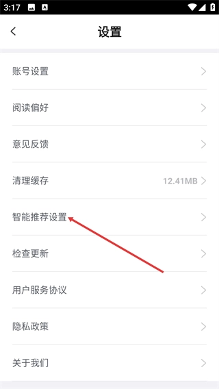 进入设置界面后,找到并点击【智能推荐设置】选项,即可进入智能推荐的相关配置页面。