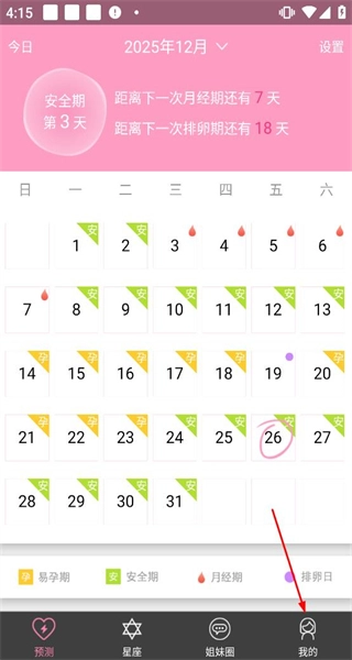 是一款专为女性打造的健康管理软件,通过记录用户的生理周期及相关身体数据,为女性提供科学、准确的安全期计算以及健康建议,帮助女性更好地了解自己的身体状况,合理规划生活。1、打开软件后,看到经期日历等内容,点击底部我的选项进入个人页面。