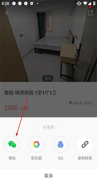 4、在分享界面中选择微信等渠道,即可将该租房信息分享给对应平台的联系人。