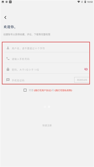 1、阅读《路灯花用户协议》与《路灯花隐私政策》后,勾选同意项,点击【同意后进入】按钮开启服务。