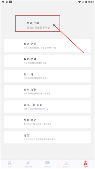 2、进入“我的”页面,选择【登陆/注册】选项,该操作可解锁更多功能权限。