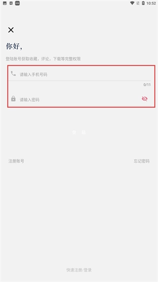 3、在登录界面,依次填写【请输入手机号码】与【请输入密码】,完成账号登录操作。