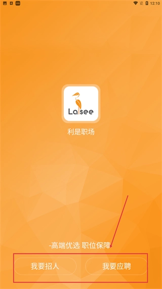 1、在利是职场的初始页面,可依据实际需求选择【我要招人】或【我要应聘】选项,随后进入对应的功能操作流程。