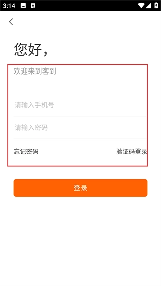 1、进入【客到】的登录页面,需在对应输入框填写【请输入手机号】与【请输入密码】。