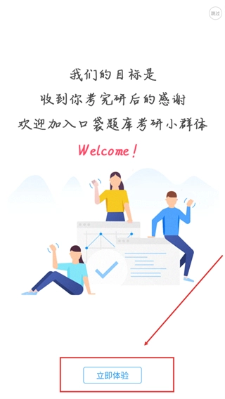 2、在欢迎页面,点击【立即体验】按钮,进入应用的登录流程页面。