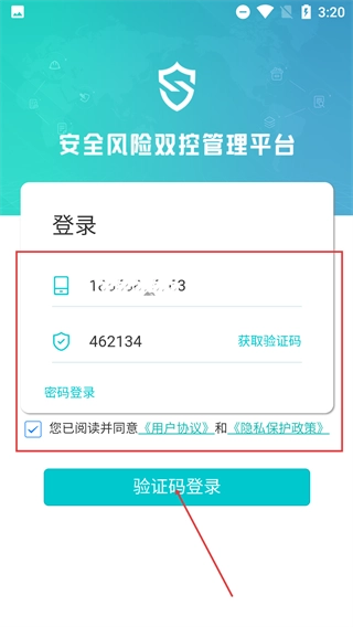 2、进入【安全风险双控管理平台】登录界面,若选择验证码登录,点击【验证码登录】选项切换至对应登录方式。