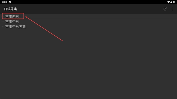 1、进入“口袋药典”的分类列表后,挑选像【常用西药】这样的分类,接着展开该分类下对应的药物类别选项。