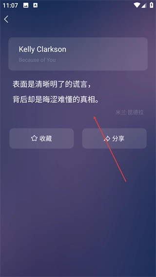 1、在【情话】分类下,选择【文艺】标签内容,可点击【收藏】【复制】等按钮,对喜欢的文案进行操作。