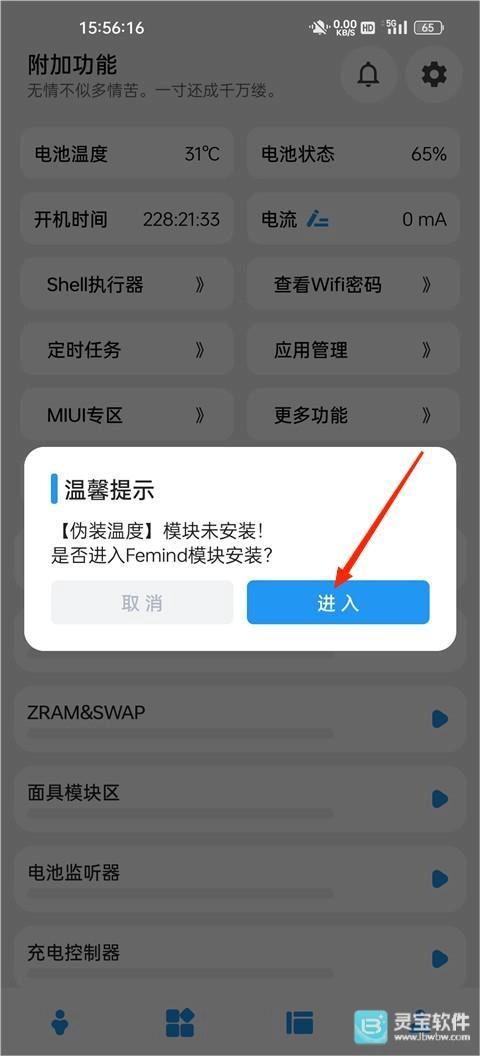 3、软件会弹出未安装femind温控提示,点击进入安装即可