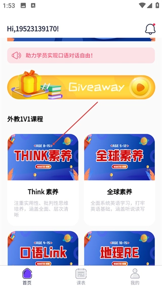 1、在应用首页,选择目标课程(如适合8-15岁的“THINK素养”),点击进入课程详情页。