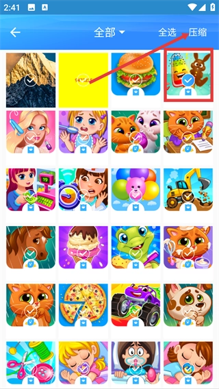 2、在图片列表中,勾选需要压缩的图片(可通过“全选”批量选择),点击右上角【压缩】按钮。