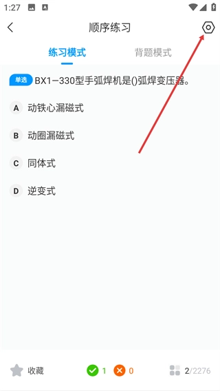 1、在【顺序练习】的练习模式界面,点击右上角的设置图标,即可打开练习相关的设置选项。