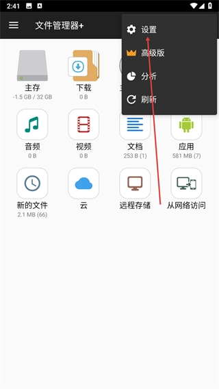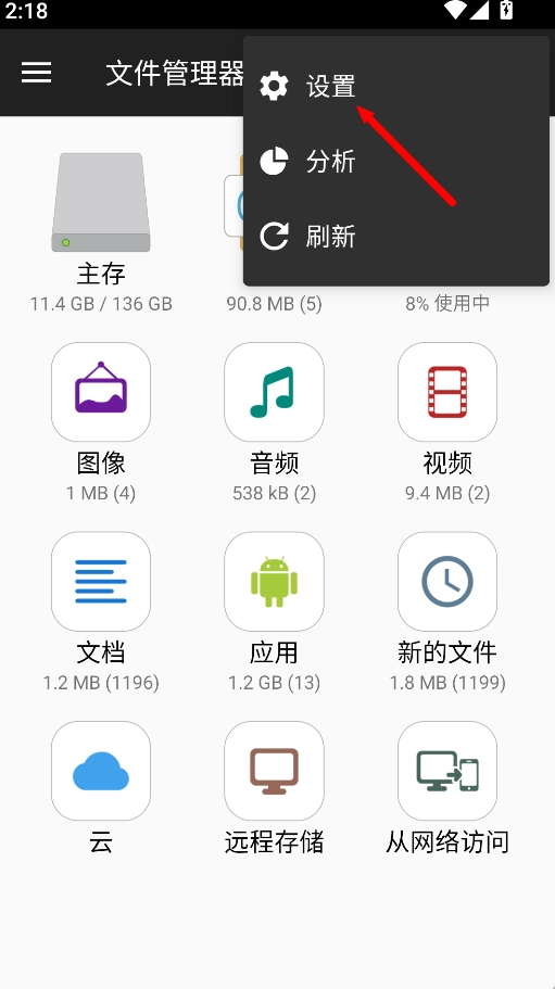 2、找到设置选项,点击进入文件管理器的设置页面。