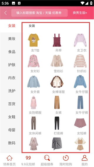 3、拥有商品搜索、领取优惠券、9.9元包邮等实用功能,操作简便容易掌握,仅需简单几步操作即可完成领券,轻松享受购物优惠。