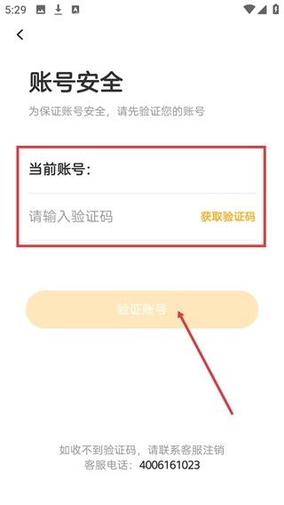 4、进入【账号安全】界面后,填写【当前账号】对应的验证码,点击【验证账号】按钮,完成验证后即可开展注销操作。